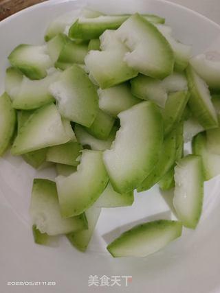 2. 毛瓜炒肉片:将切好的毛瓜片和肉片一起炒,加入适量的盐、生抽、料酒等调料,炒至肉片变色即可。